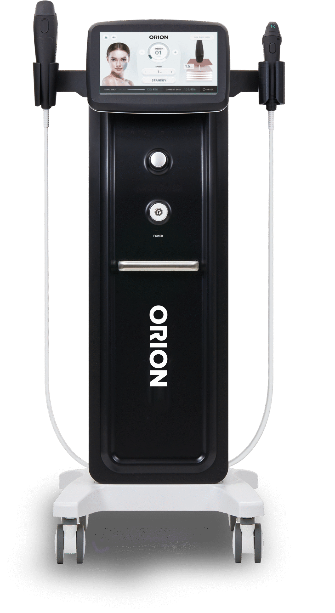 The Orion HIFU System comes equipped with two specialized handpieces, delivering unparalleled precision and versatility for face and body treatments.